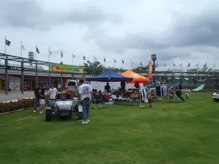 ゲームの後は芝生の会場へ、SEVENを移動して受付です。