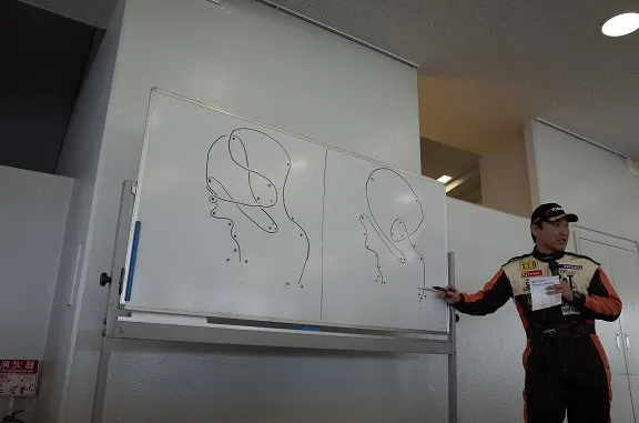 午前の走行が終了しランチタイムの後に、講師の小林さんから、各コースの攻略法が裏ワザと一緒に楽しく説明して頂けました。