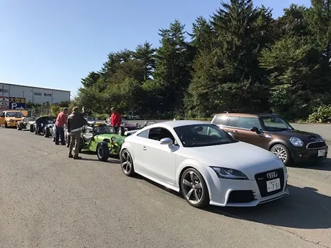 今日のツーリングは12台、セブン9台・インプレッサS202・アウディTTRS・MINIクラブマンクーパーSである。