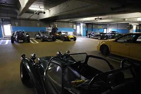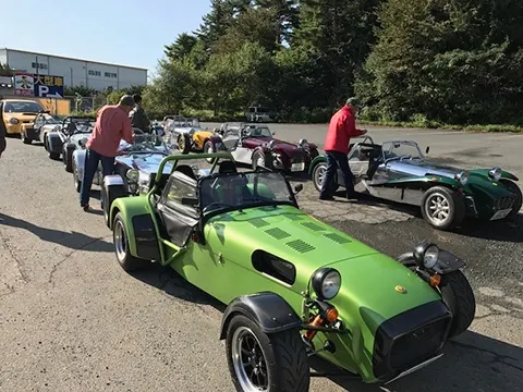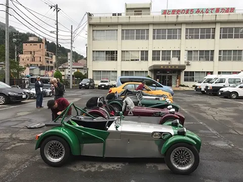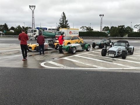 料金所出口で迎えのT氏のミニと合流、短い挨拶のあとセブン8台をしたがえて総勢14名は市内のホテルへ。ホテルでは一日中雨に打たれた体をお風呂で癒し後、胃袋を満たすべく近くの山菜料理店へ。美味しい料理と酒は疲れた体にしみわたった。