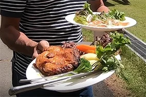今年もセブンデ-は新緑の中で食事を楽しみながら「チーム制によるクイズ」が行われました。クイズの内容はセブンにまつわるマニアックな問題あり、サッカーにまつわる問題ありと広範囲の問題に頭を悩ませ各チームにて侃々諤々と問題を解いていました。チーム制でクイズを解くとの事で、初対面の方々とのコミュニケーションも取れたのではないでしょうか?