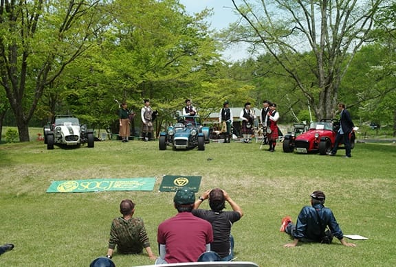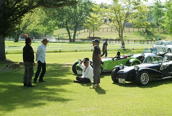 新緑の時期に高原の芝生の上で、自分のセブンに見とれる人、他のセブンを見て違いを楽しむ人、芝生の上でゆったりする人、セブン関連商品を購入する人、それぞれが思い思いの楽しい一時を過ごされました。