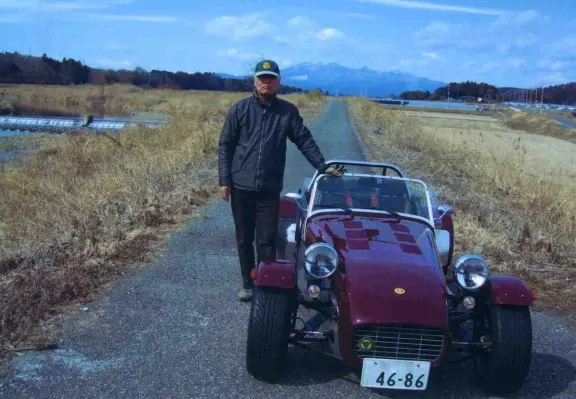 セブンとの馴れ初めは、創刊間もないカーグラフィックに載ったロータス・セブンのロードテストの中で小林彰太郎氏が「シートにすわって手のひらを平に地面につけられるほどだ」とその低さを強調している記事を読んで衝撃を受け、こんな車に乗ってみたいと思っていました。